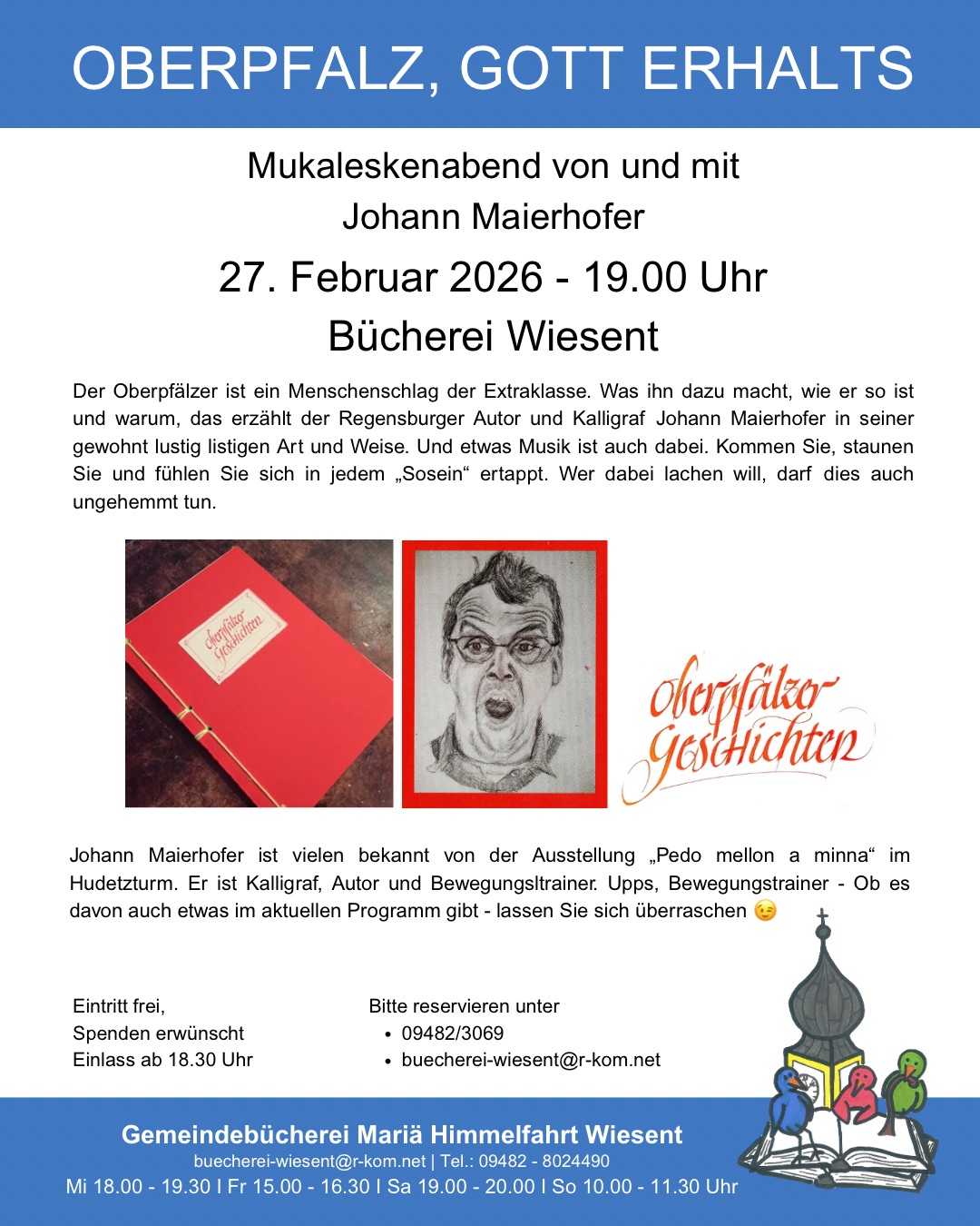 Eintritt frei, wir freuen uns über Spenden für unsere Büchereiarbeit.